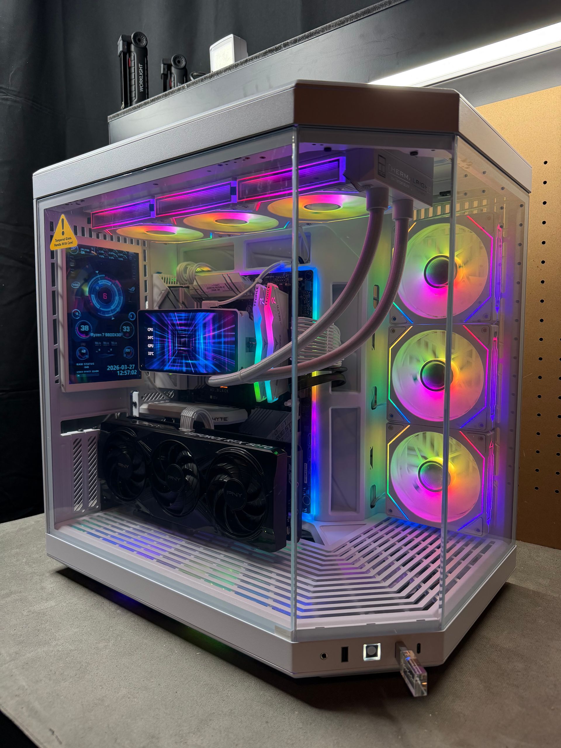 Cooling: 360mm AIO liquid cooler with curved LCD screen